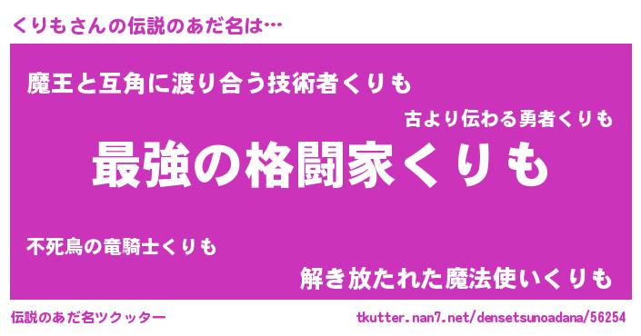| ヒーロー風カッコイイあだ名 | 『ウルトラくりもマン』『仮面クリダー』 |