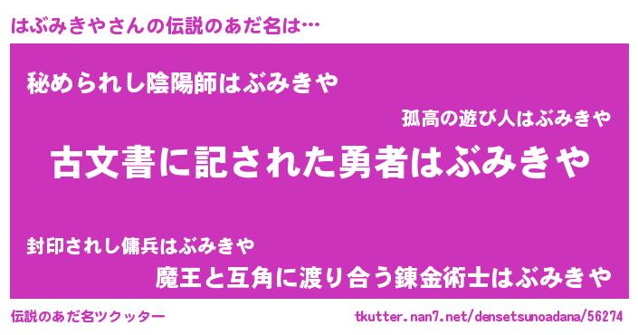 | 意味不明あだ名 | 『永久保存はぶみきや』 |