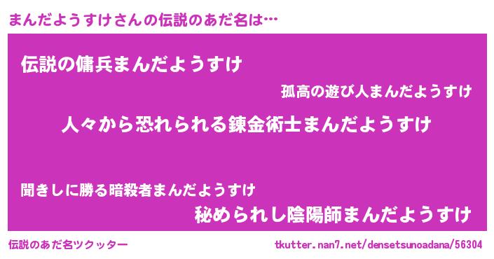 | 男性向けラノベタイトル風あだ名 | 『おまえをオタクにしてやるから、俺をまんだようすけにしてくれ! 』 |