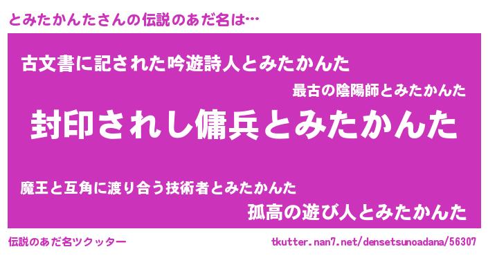 | 男性向けラノベタイトル風あだ名 | 『この素晴らしい世界にとみたかんたを!』 |