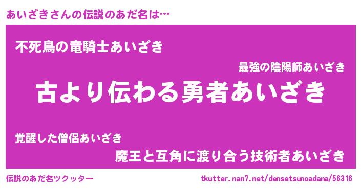 | 胡散臭い通販商品みたいなあだ名 | 『来世でも幸せになれる水素水…その名も「あいざき」』 |