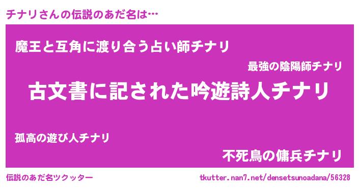 | 意味不明あだ名 | 『自称チナリ』『永久保存チナリ』 |