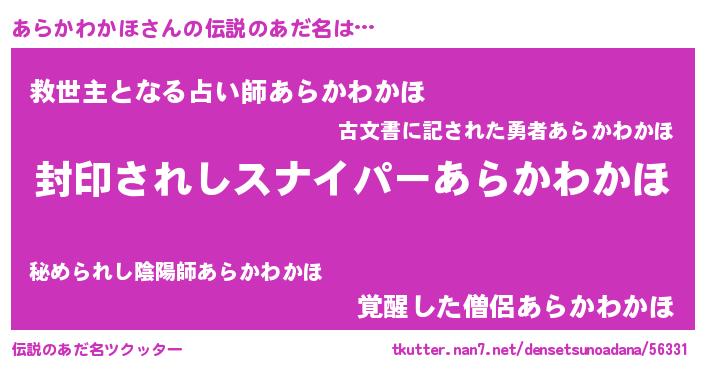 | ヒーロー風カッコイイあだ名 | 『スーパーアラカワカホ』『天弓騎士アラ』 |