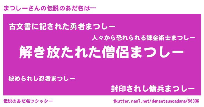 | ヒーロー風カッコイイあだ名 | 『幻影騎士マツ』『最強戦士マツシー』 |