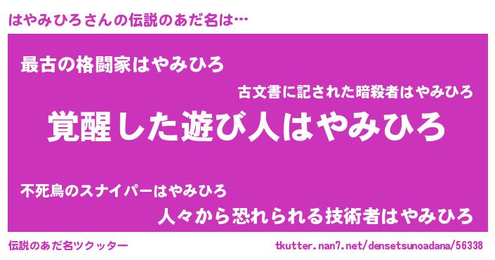 | ヒーロー風カッコイイあだ名 | 『天弓騎士ハヤ』『天空の使者はやみひろ』 |