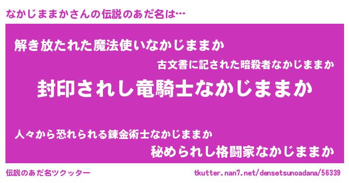| 男性向けラノベタイトル風あだ名 | 『なかじままか~年齢イコール彼女いない歴の魔法使い~』 |