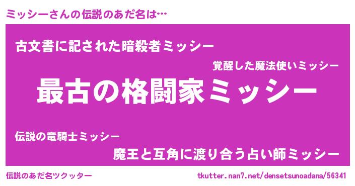 | ヒーロー風カッコイイあだ名 | 『ウルトラミッシーマン』『ネオミッシー』 |