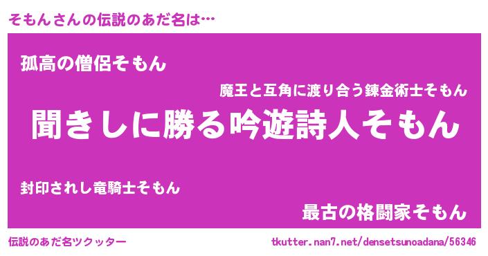 | 男性向けラノベタイトル風あだ名 | 『そもんという概念が存在しない退屈な世界 』 |