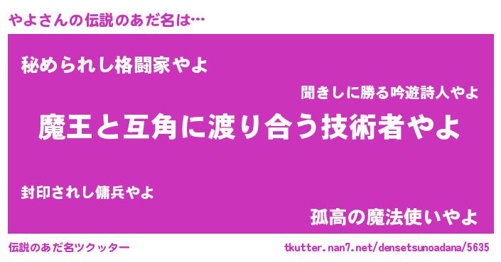 | 意味不明あだ名 | 『住所不定無職やよ(7歳)』 |