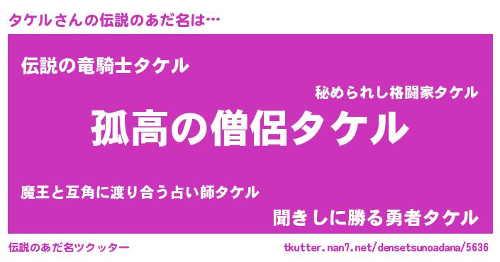 | ヒーロー風カッコイイあだ名 | 『魔戒騎士タケ』『スーパータケル』 |