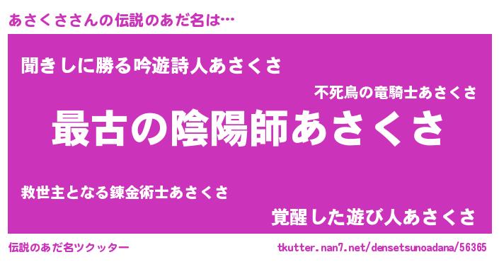 | 意味不明あだ名 | 『あさくさフォーエバー』『自称あさくさ』 |