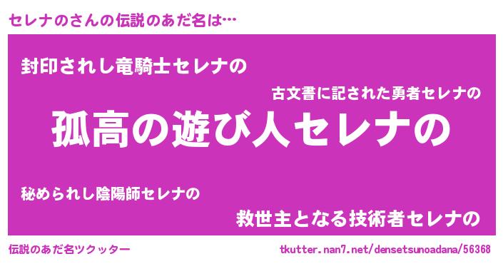 | 女子向けラノベタイトル風あだ名 | 『セレナのなんてお断りですっ。』 |