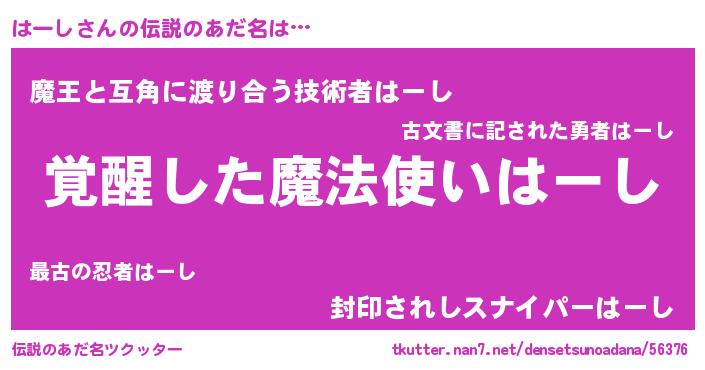 | 意味不明あだ名 | 『自称はーし』『とにかく怪しいはーし』 |