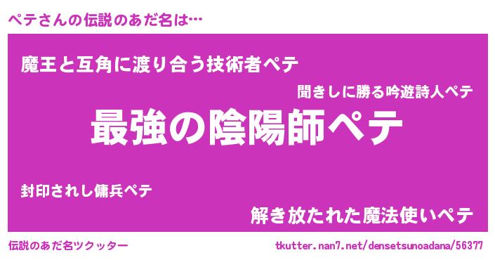| 胡散臭い通販商品みたいなあだ名 | 『あなたにだけ特別に提供する世界で10本だけ現存している希少なブランデー…その名も「ペテ」』 |