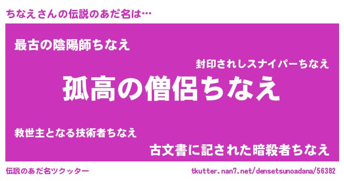 | ヒーロー風カッコイイあだ名 | 『暗黒騎士チナ』『ウルトラちなえマン』 |
