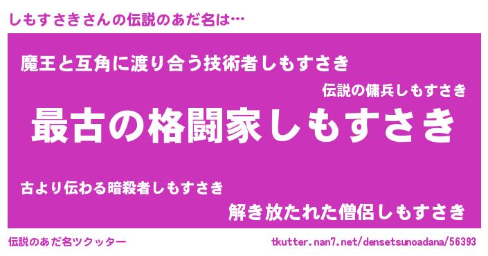| 男性向けラノベタイトル風あだ名 | 『この素晴らしい世界にしもすさきを!』 |