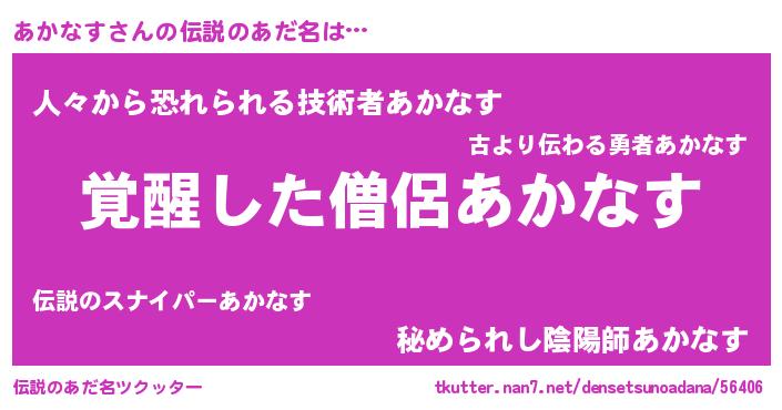 | 意味不明あだ名 | 『住所不定無職あかなす(41歳)』 |