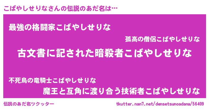 | 男性向けラノベタイトル風あだ名 | 『誰もが恐れるあのこばやしせりなが、ぼくの専属メイドになるようです。』 |