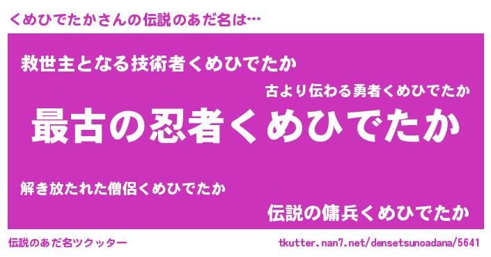 | ファンタジー風あだ名 | 『エターナルクメヒデタカー』 |