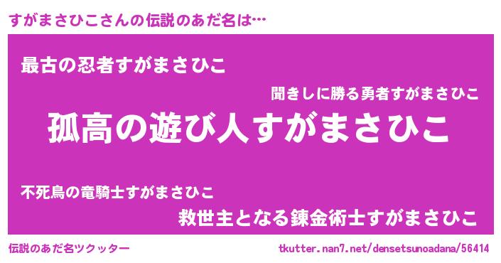 | ヒーロー風カッコイイあだ名 | 『黄金騎士スガ』『最強戦士スガマサヒコ』 |