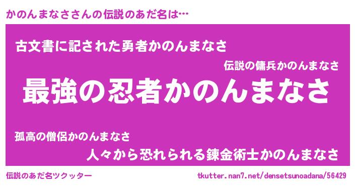 | ヒーロー風カッコイイあだ名 | 『究極戦士カノンマナサ』『仮面カノダー』 |