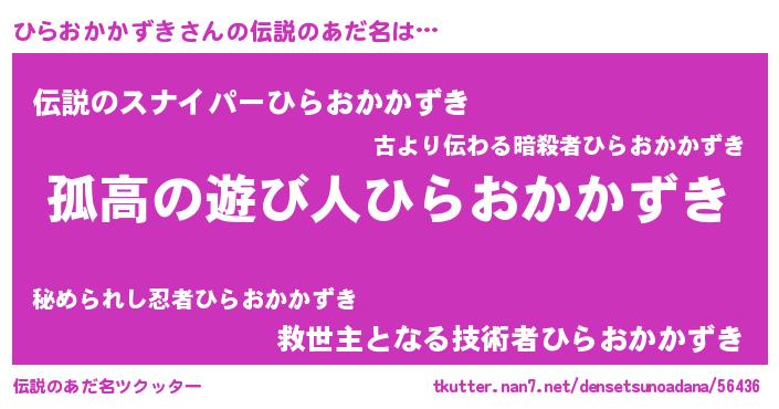 | ポケモン風あだ名 | 『ヒラゴンZ』『ヒヒラオカカズキ』 |