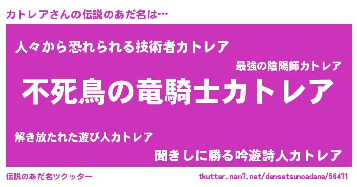 | ヘコむあだ名 | 『カトふぇ~』『カトレア(笑)』 |