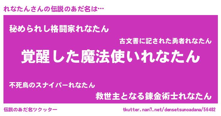 | 男性向けラノベタイトル風あだ名 | 『この素晴らしい世界にれなたんを!』 |