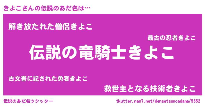| 男性向けラノベタイトル風あだ名 | 『キヨコスレイヤー』 |
