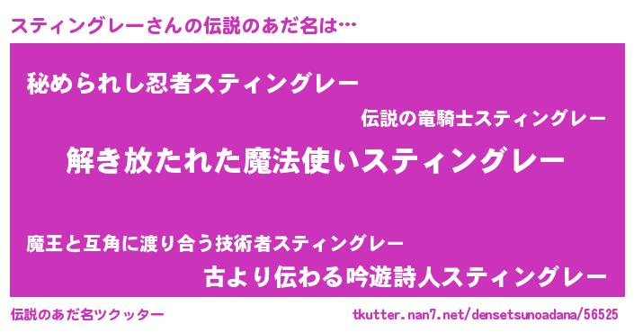 | 男性向けラノベタイトル風あだ名 | 『ダンジョンにスティングレーを求めるのは間違っているだろうか』 |