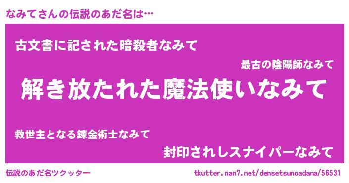 | 意味不明あだ名 | 『とにかく怪しいなみて』『自称なみて』 |