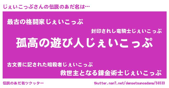 | 男性向けラノベタイトル風あだ名 | 『ジェイコップスレイヤー』 |