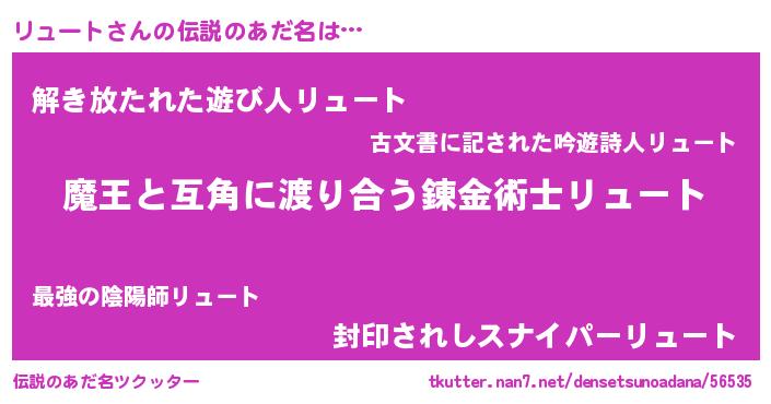 | ヒーロー風カッコイイあだ名 | 『愛の使者リュート』『銀牙騎士リュ』 |