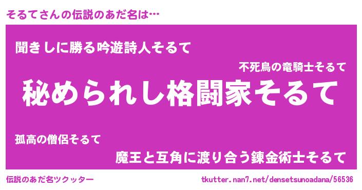 | 意味不明あだ名 | 『そるてフォーエバー』『永久保存そるて』 |