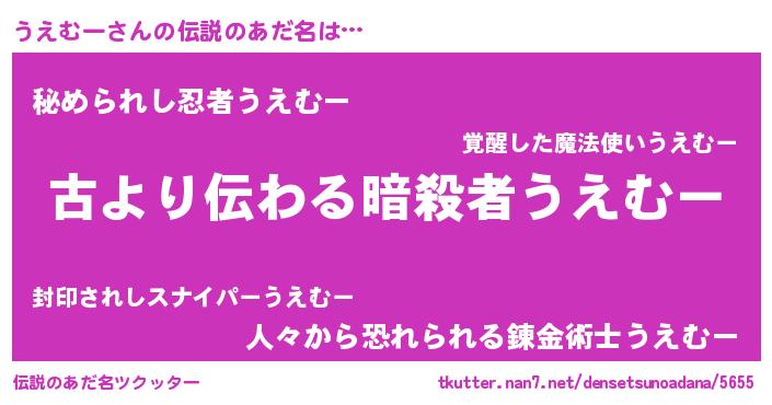 | 意味不明あだ名 | 『永久保存うえむー』『自称うえむー』 |