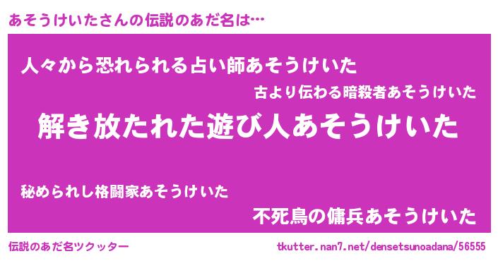 | 意味不明あだ名 | 『住所不定無職あそうけいた(98歳)』 |