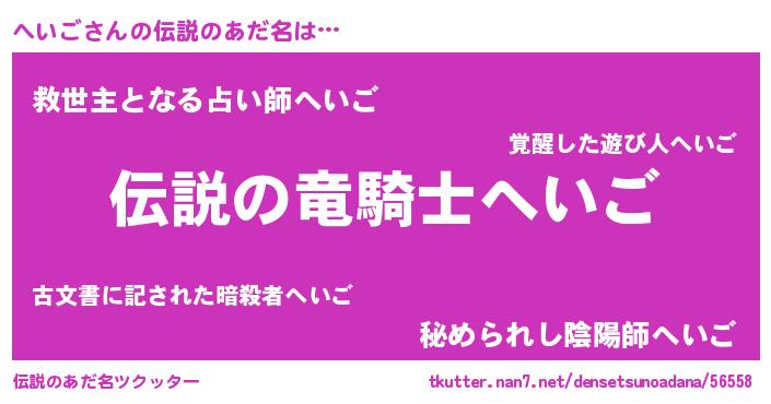 | 意味不明あだ名 | 『住所不定無職へいご(9歳)』『自称へいご』 |