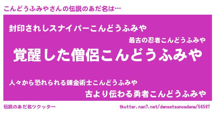 | 男性向けラノベタイトル風あだ名 | 『こんどうふみやの嫁は女の子じゃないと思った?』 |