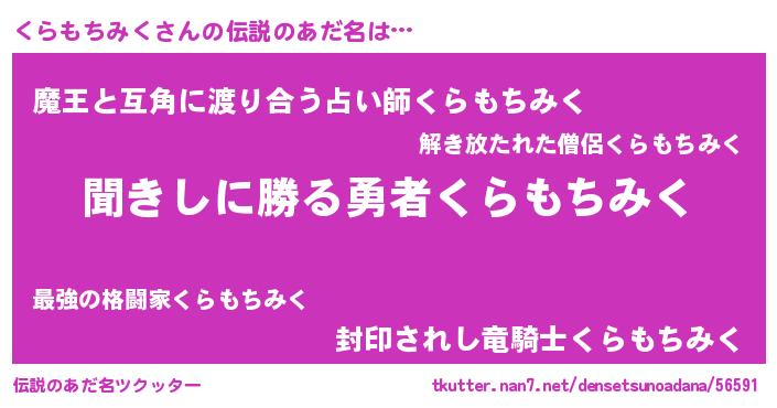 | 男性向けラノベタイトル風あだ名 | 『くらもちみくという概念が存在しない退屈な世界 』 |