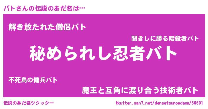| ファンタジー風あだ名 | 『エターナルバトー』『ファントムバトス』 |