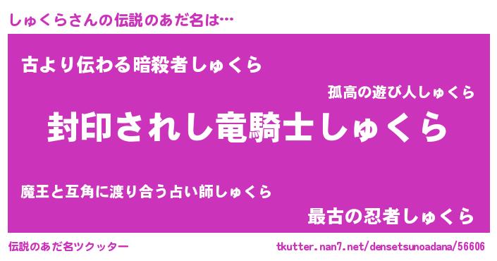 | 男性向けラノベタイトル風あだ名 | 『シュクラアートオンライン』 |