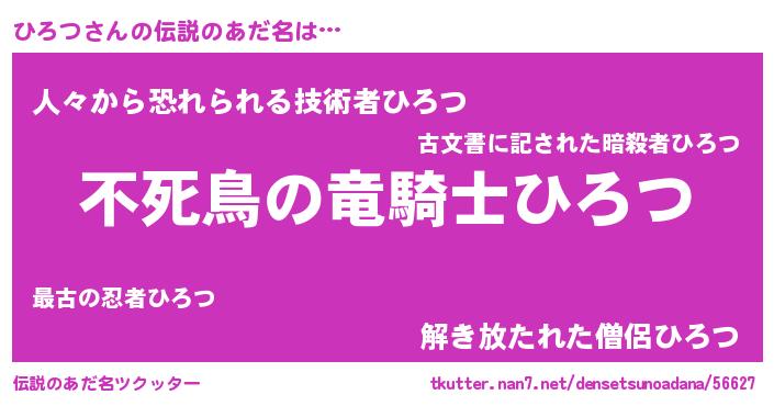 | 男性向けラノベタイトル風あだ名 | 『転生したらひろつだった件』 |