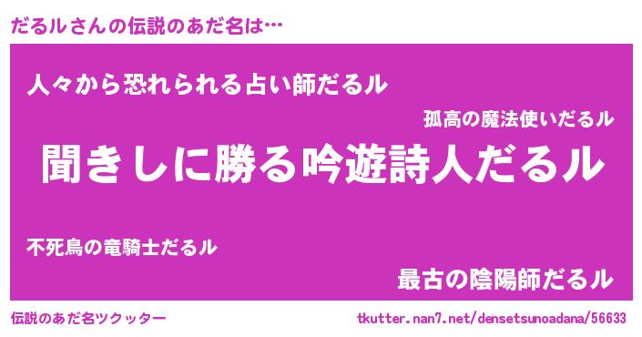 | ヒーロー風カッコイイあだ名 | 『ネオダルル』『友情の使者だるル』 |
