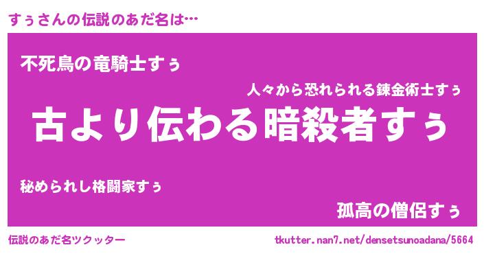| 胡散臭い通販商品みたいなあだ名 | 『来世でも幸せになれる健康食品…その名も「すぅ」』 |
