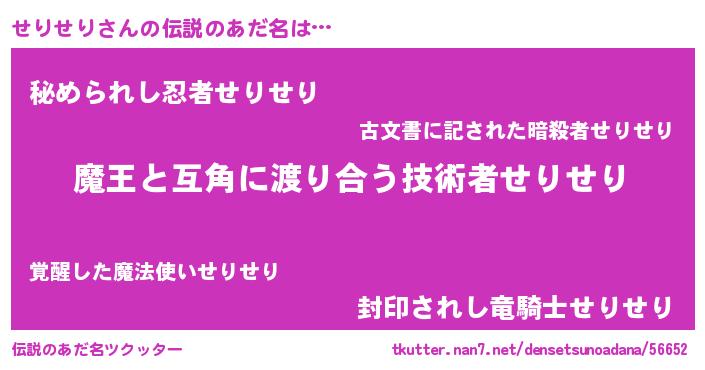 | ポケモン風あだ名 | 『セックウザ』『セリセダネ』 |