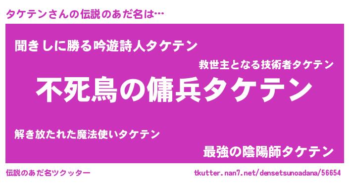 | 男性向けラノベタイトル風あだ名 | 『タケテンアートオンライン』 |
