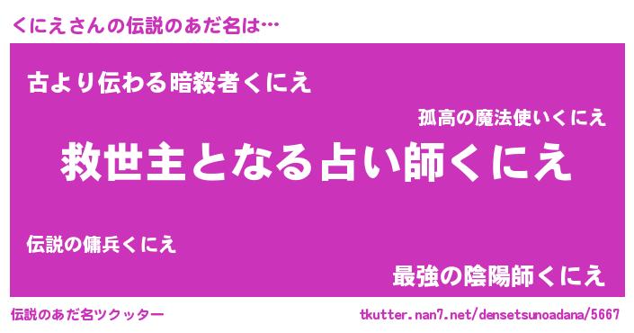 | 意味不明あだ名 | 『住所不定無職くにえ(39歳)』『自称くにえ』 |