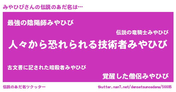 | ヒーロー風カッコイイあだ名 | 『友情の使者みやひび』『黄金騎士ミヤ』 |