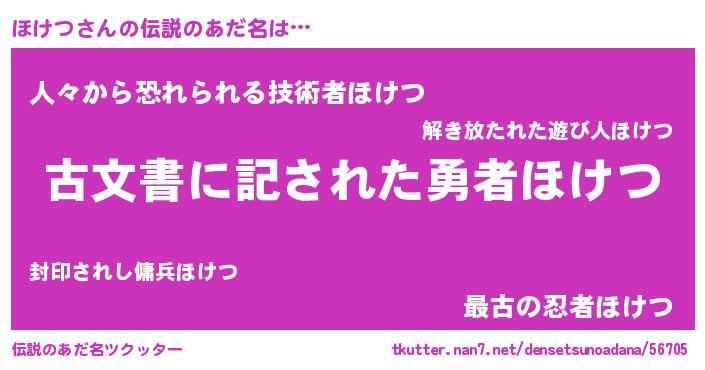 | ヒーロー風カッコイイあだ名 | 『ネオホケツ』『仮面ホケダー』 |