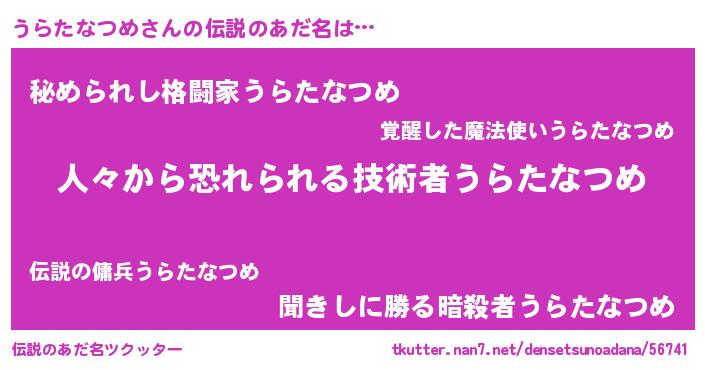 | 意味不明あだ名 | 『自称うらたなつめ』 |